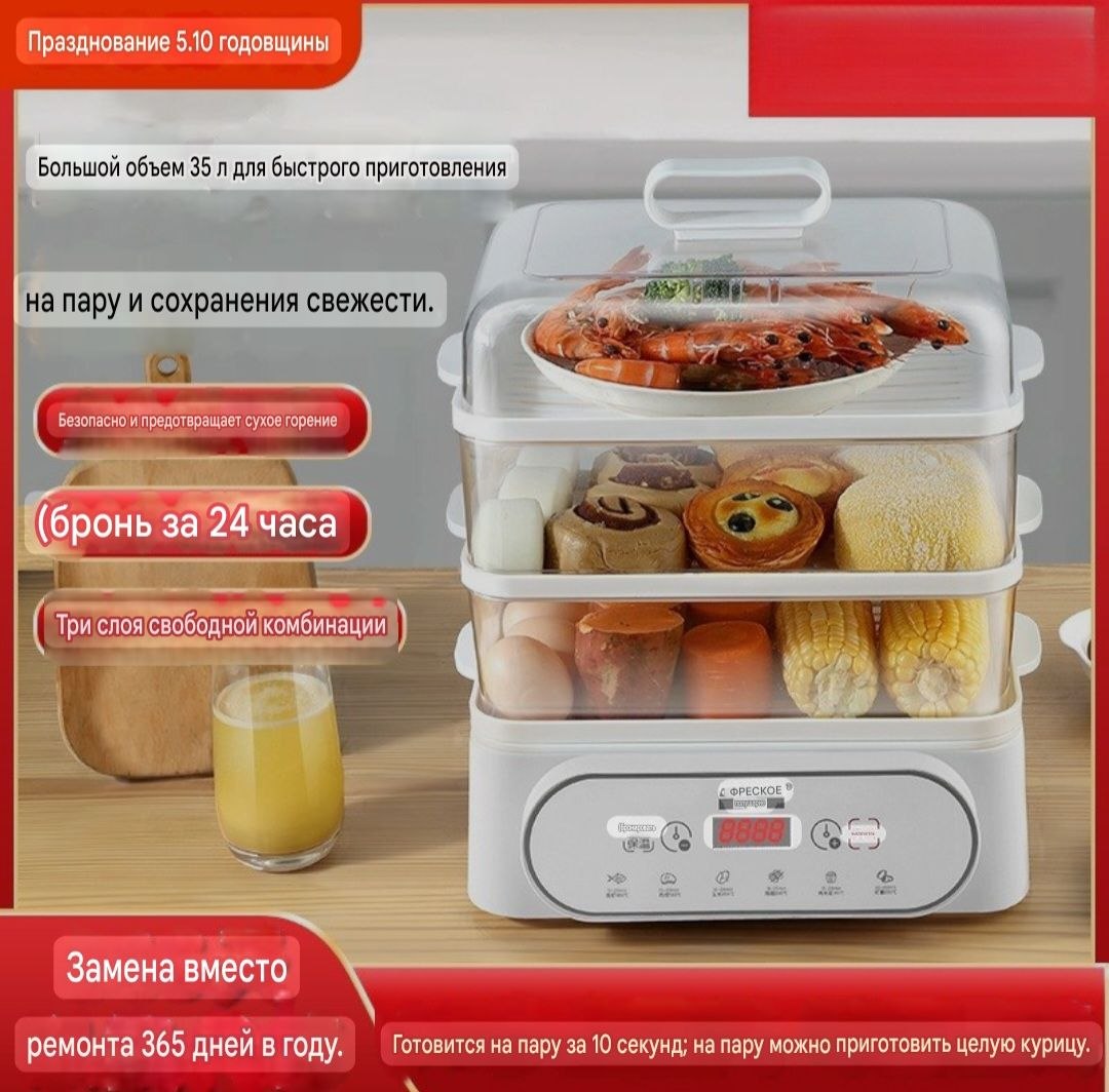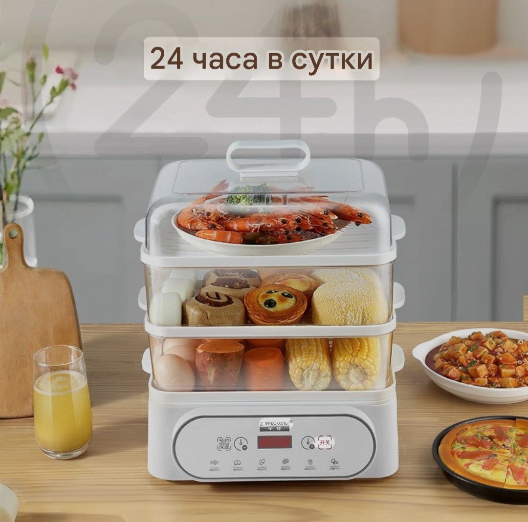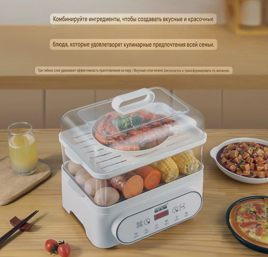 Электрическая пароварка‑мультиварка — это незаменимый помощник для тех, кто ценит вкусную и полезную пищу, богатую витаминами и питательными веществами. Прибор позволяет готовить блюда на пару, сохраняя в продуктах максимум пользы, натуральный вкус и сочность. Благодаря современному дизайну пароварка отлично вписывается в любую кухню и подходит как для ежедневного использования, так и для диетического питания всей семьи.